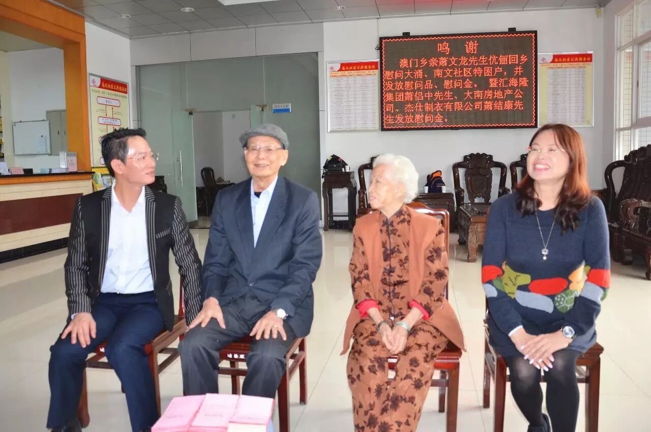1月5日上午,大涌镇旅澳门乡亲萧文龙和其妻子、儿女一起到南文社区开展新春慰问活动,这是他们连续31年回乡慰问家乡的困难家庭群众。