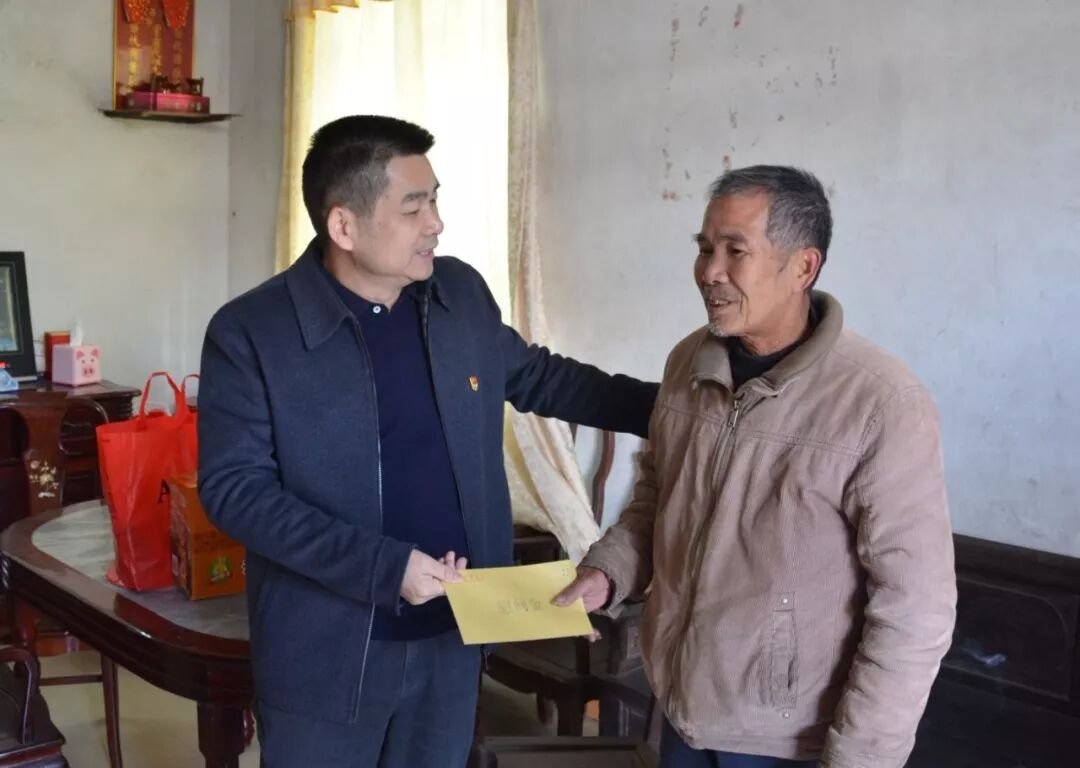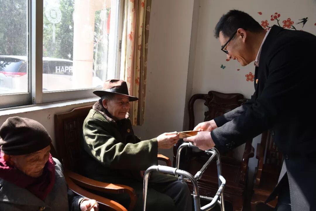 另外,在叠石村委干部的陪同下,大涌镇党委副书记、镇长贺修虎、副镇长余添宏以及叠石村驻村组成员一行,先后来到了重点优抚对象余惠广、百岁老人陈秀英、老党员余学勤以及困难老党员余华财家中,并和老人拉起了家常。贺修虎镇长将慰问品和慰问金送到老人手上,向他们转达了党委政府的节日问候。