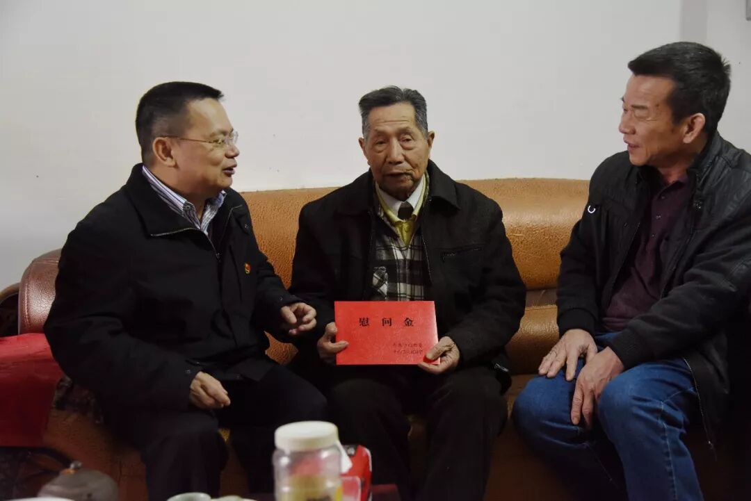 2月6日下午,副市长袁永康在大涌镇党委书记郭丛枢、市民政局副局长刘少卿等陪同下,前往南文社区慰问了84岁的军烈属李金衍、大涌镇改革开放后的首名女兵林绮晴的父母、91岁的在乡复员军人萧汉余。