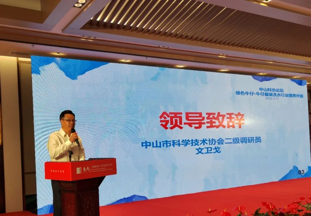 3月17日下午,“中山科协论坛——绿色牛仔•牛仔服装洗水行业提质升级论坛”在中山大涌成功举行。本次论坛由中山市科学技术协会主办,中山市纺织工程学会承办,广东省纺织工程学会、广东省纺织协会、中山市大涌镇商会、广东省纺织工程学会(中山大涌)科技服务站、广东省科学院测试分析研究所(中国广州分析测试中心)、中山职业技术学院、中山市沙溪理工学校、广东省服装职业教育集团、“水洗天地”培训中心、广州浩瀚资讯传播有限公司、广东职业技术学院、江门职业技术学院、中广测(中山)检测技术有限公司共同协办。