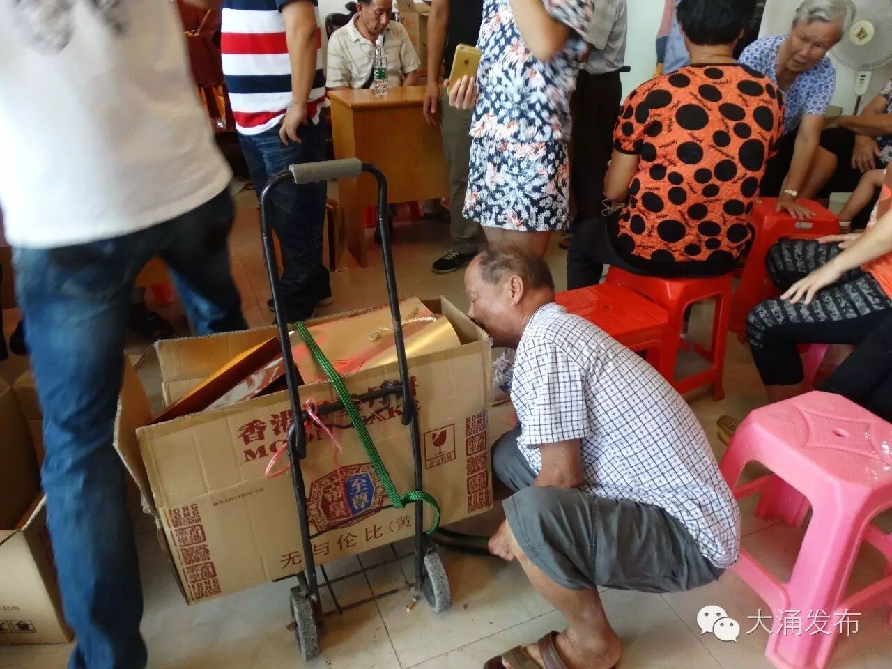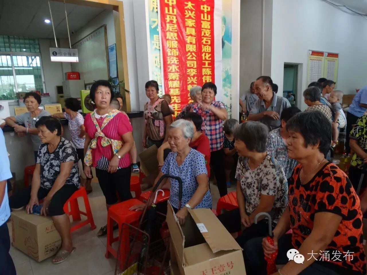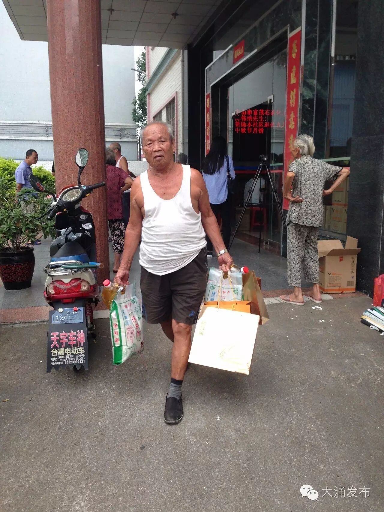 9月6日一大早,在大涌老人福利会门口人头攒动,老人家们推出小三轮车、单车等高高兴兴来到大涌社区居委会,喜领佳节礼物。