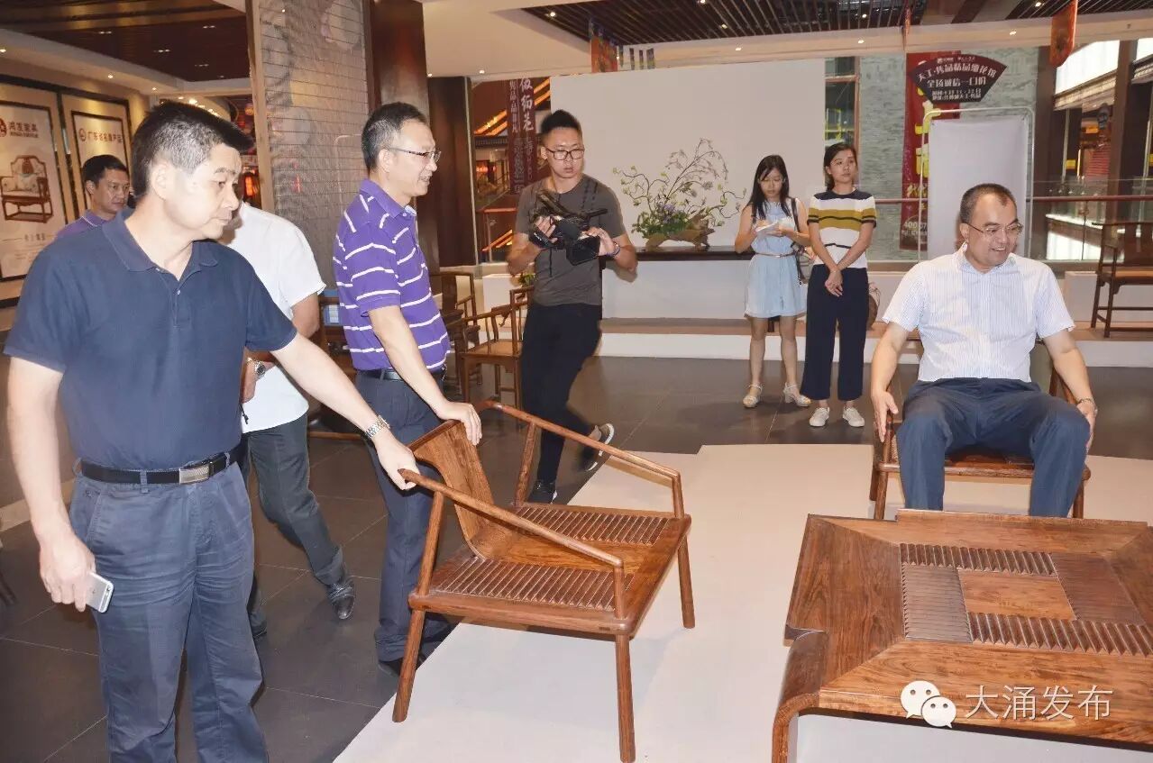 此外,为了进一步了解大涌的红木产业发展,杨安队也深入到大涌本地家具品牌鸿发家具展厅以及和兴家具打造的中式家居生活体验馆内参观。其中,在中式家居生活体验馆内,杨安队更是对展厅内的新式家具兴趣十足,不时询问家具的木种、价格等相关问题,并在试坐完之后,盛赞这些家具极具特色。