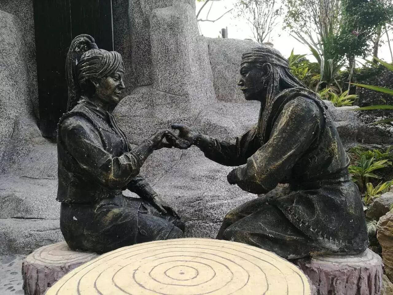 凉亭、古人雕塑等景致,