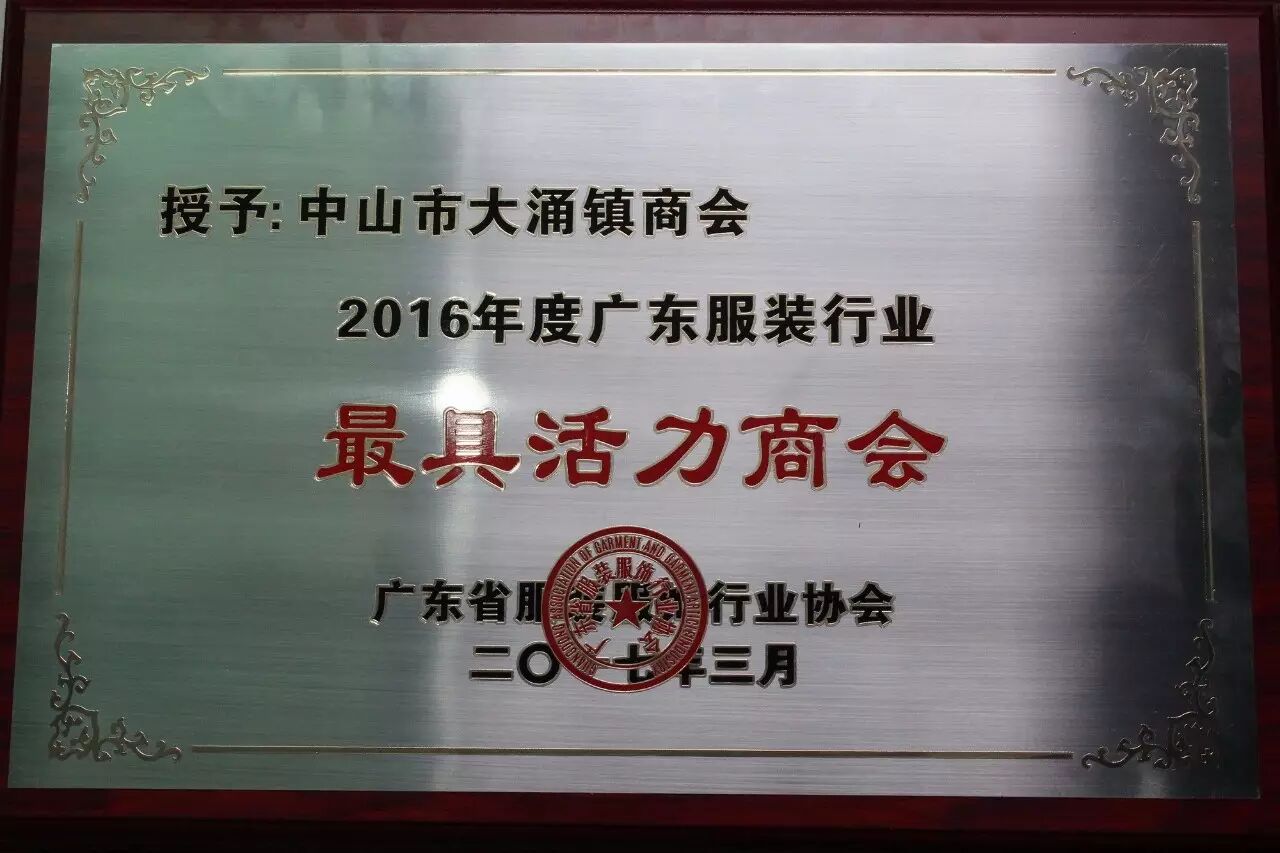 2017年3月,广东省服装服饰行业协会授予2016年度广东服装行业最具活动商会。