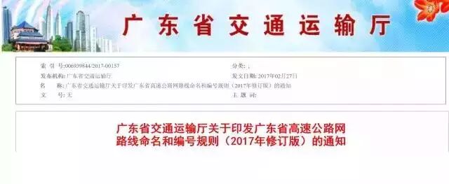 广东省交通运输厅重新修订了广东省高速公路网路线命名和编号方案,并于近日印发。