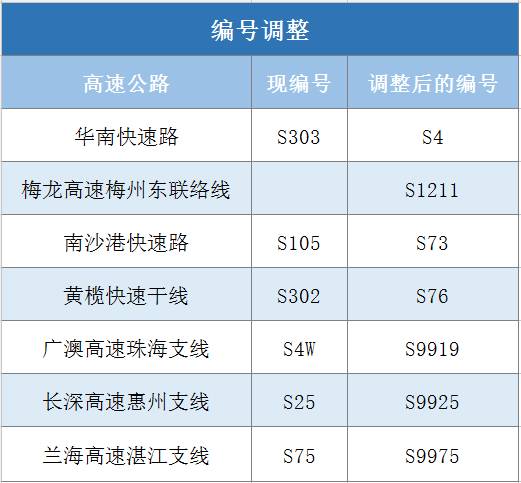 ① 《国家公路网规划》(2013-2030年)将部分广东省内高速纳入国家高速公路网(如原乐广高速、清连-广清高速、深罗高速、仁深高速、潮莞高速等),导致对应的省高速公路编号空出来。