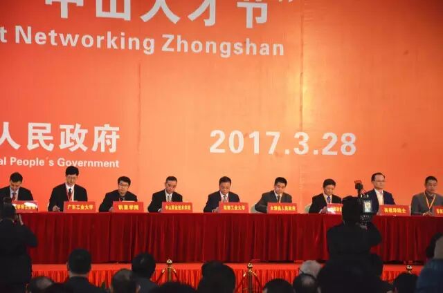由大涌镇人民政府、中山职业技术学院、中南林业科技大学家具与艺术设计学院作为甲、乙、丙三方共同建设的全国首个红木家居学院作为第四批的招才引智项目上台签约。