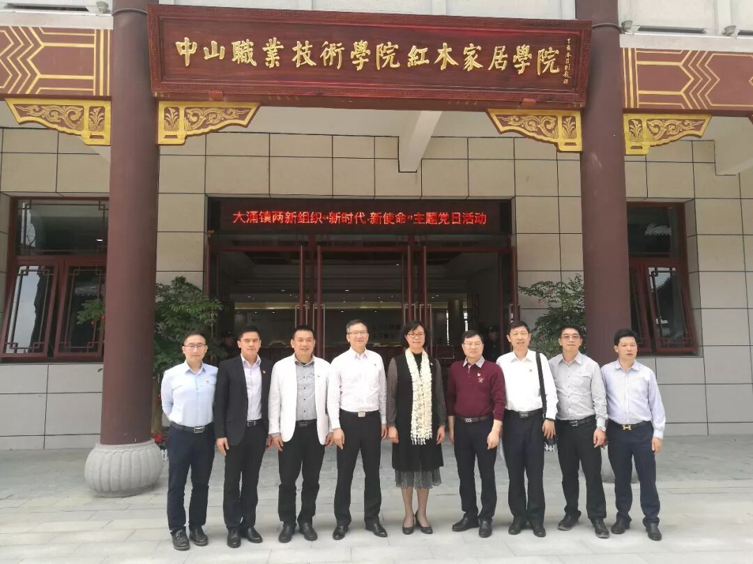 为更好地贯彻落实市委有关人才政策,并结合市两新组织党工委、市人才工作局《关于到两新组织党组织中开展“新时代•新使命”主题党日活动的通知》要求,2018年3月29日上午,适逢第五届“中山人才节”举办期间,中山市委常委、统战部部长梁丽娴、市委组织部、市两新组织党工委书记汤毅清一行莅临大涌,深入全国首个红木家居学院开展“新时代·新使命”主题党日活动,进一步了解大涌两新党组织如何发挥政治优势引领人才发展以及红木技能人才的创业就业情况,共同探讨新时代如何发挥党建引领人才发展优势,共同凝聚高端紧缺适用型人才。