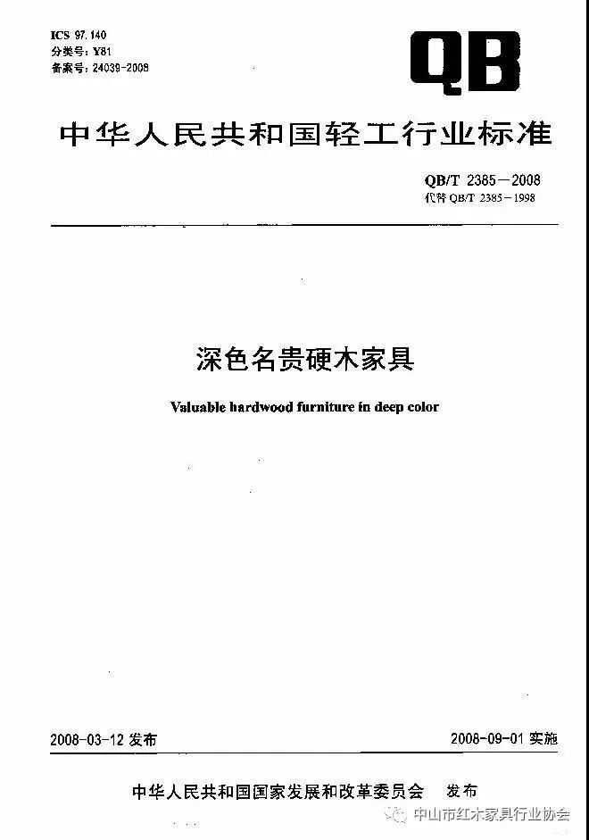 由中山市红木家具工程技术研究开发中心作为主要修订起草单位,由中国轻工业联合会发布的《深色名贵硬木家具》行业标准(QB/T2385-2008)中提到“深色名贵硬木家具产品中,用材符合 GB/T18107-2000 《红木》规定的产品称为红木家具产品”,明确指出红木家具为深色名贵硬木家具的一部分。
