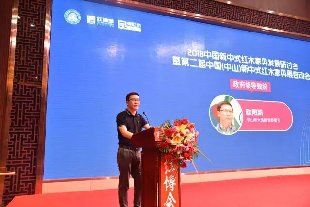 2017年,首届新中式红木家具展的成功举办,“新中式红木家具”被推向大众视野并获得广泛肯定。大涌镇党委委员欧阳凯在研讨会上高度肯定了其意义,他说:“大涌作为‘新中式红木家具’发源地,举办中国(中山)新中式红木家具展是推动产业提质增效、高质量发展的必须之举。希望通过展会,让我们对新中式看得更深,对中山红木产业未来看得更远。”