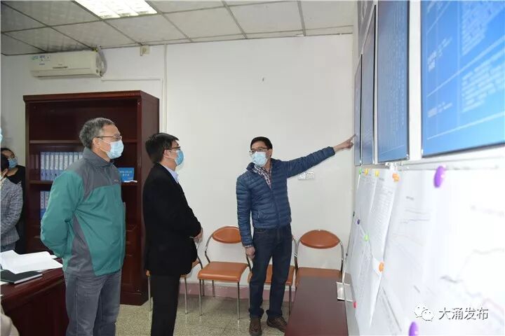 大涌防疫指挥部指挥长郭丛枢从组织领导、工作部署、物资准备、力量发动、运作流程等方面汇报了大涌防控疫情工作情况,得到了调研组一行的高度肯定。