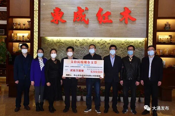 为向奋战在一线的防控人员致谢,东成家具有限公司现场捐赠20万元给大涌镇疫情防控指挥部,表示政企疫路同行、共克时艰,全力支持大涌打赢疫情防控阻击战。