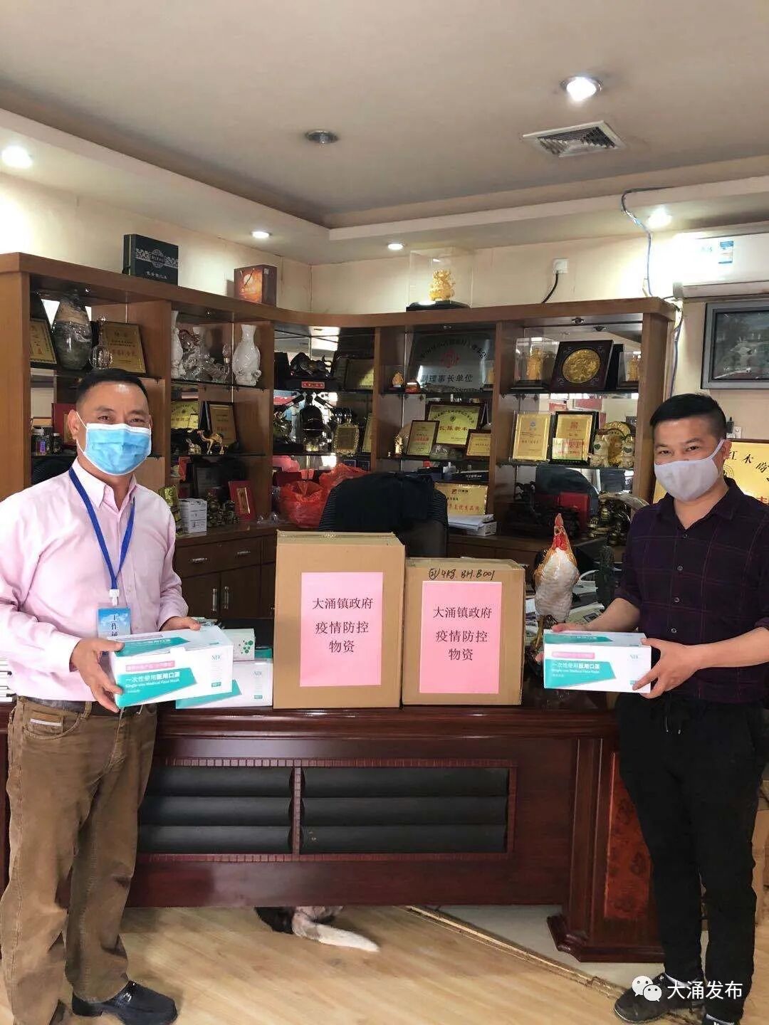 ▲大涌向镇内每家规上限上企业免费提供1万个口罩和2个测温仪,为企业复工复产“保驾护航”。