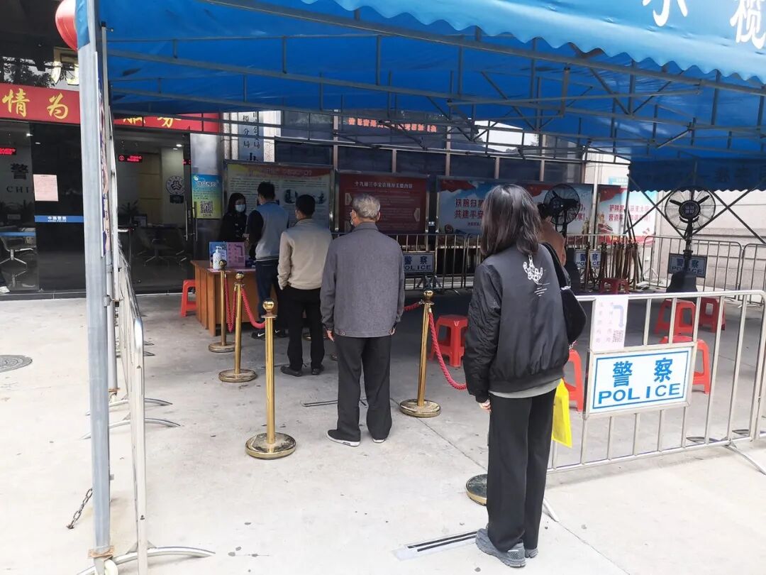 全市各分局户政业务窗口在落实现场办理工作中,均安排工作人员向市民宣传疫情防控知识并做好各项疫情防护措施,对前来办事的市民提供体温测量、消毒、基本信息登记、业务咨询指导、预约登记核实等服务,引导市民保持距离,依次进入前台窗口办理业务,并限定在同一时段大厅办理业务市民不超过15人。部分有条件的镇区,在***大厅门前空旷地方临时搭建市民等候区,等候区按每1米距离放置一张椅子,确保空气流通,同时将咨询、服务登记窗口也前移至等候区位置。