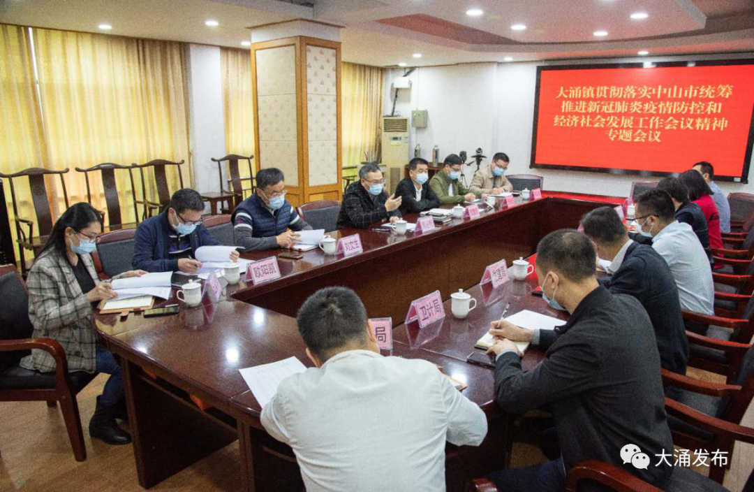 近日,大涌镇组织召开贯彻落实全市统筹推进新冠肺炎疫情防控和经济发展工作会议专题会。