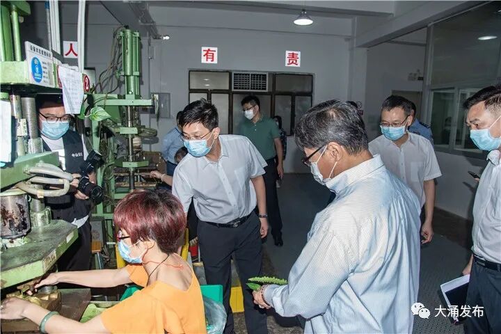 工作组一行走访了华泰工艺制品有限公司的仿真花研发制作工艺各流程、半自动化口罩生产车间和大自然格瑞的自动化生产车间。