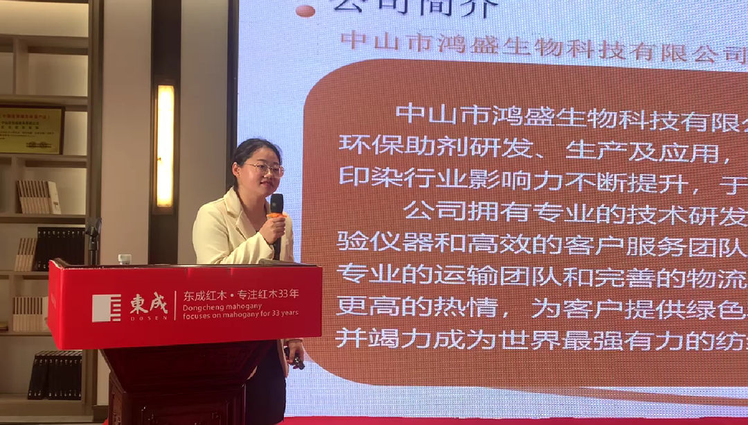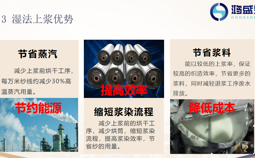 最后,中山市鸿盛生物科技有限公司研发部总监陈阳进行了《湿法上浆在牛仔浆染上的应用》的分享。据悉,湿法上浆就是在牛仔上浆染联合机上使用湿法上浆,通俗讲就是染色后的纱线,不烘干直接进行上浆,从而起到减少蒸汽、节能减排的目的。